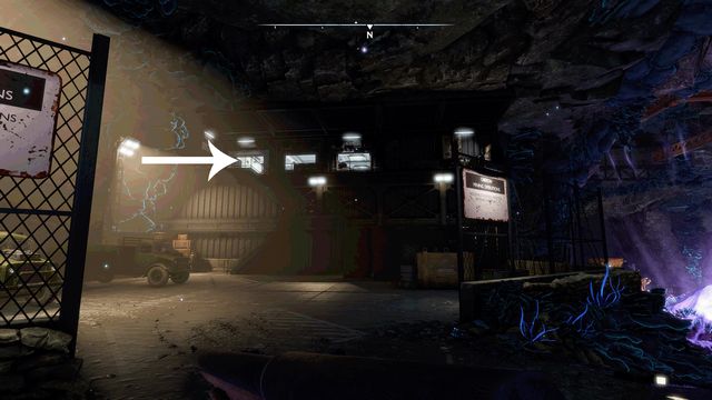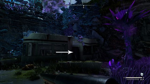 Entrez dans le bâtiment sur votre gauche en arrivant (photo ci-dessous à gauche). Récupérez l'indice de quête "Documents du B.A.R.D. / Pas une météorite ordinaire" dans la pièce de l'échantillon (photo ci-dessous à droite).