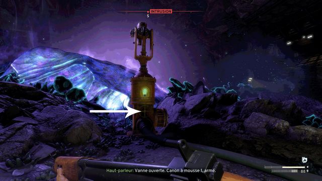 J'ai pris l'option "courir", flinguez les champignons roses avant qu'ils vous explosent dessus et placez immédiatement la batterie dans la machine. Vous avez le temps si vous avez pris la compétence qui