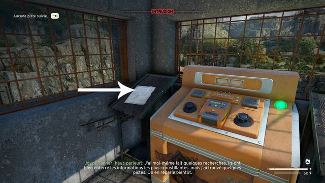 Retraversez la passerelle et récupérez l'indice de quête "Centrale de Windscale / Extraction de l'obérite" dans le bâtiment suivant (photos ci-dessous).