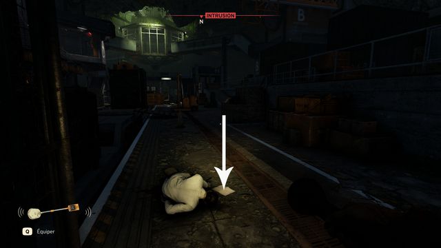 Fouillez le cadavre, vous récupérez sur lui "la carte d'accès de la salle de contrôle des grues" (photo ci-dessous à gauche). Vous obtenez également un indice de quête "Echangeur : Divers / Prends en charge les