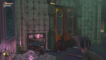 de départ (photo ci-dessous à gauche). Vous tombez nez à nez avec la deuxième petite soeur. Tuez d'abord son protecteur puis sauvez-la.