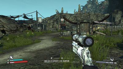 Cliquez sur la balise nord pour l'activer (photo ci-dessous à gauche). Allez au pont (photo ci-dessous à droite) et parlez à Claptrap pour l'abaisser.