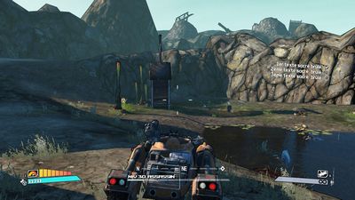 Pris sur le tableau des primes à Middle of Nowhere. Prenez le téléporteur et partez pour "Trash Coast". Allez à l'endroit suivant (photos ci-dessous).