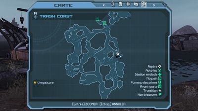 Parlez-lui pour qu'il ouvre le téléporteur pour "Trash Coast" et que la quête se valide. En approchant du téléporteur, une nouvelle quête se lance "Une Autre Pièce du Puzzle".