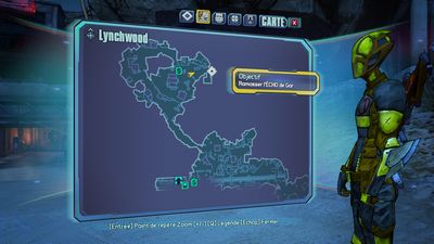 Quête donnée par un Skag à "Lynchwood" à l'endroit suivant (photos ci-dessous).