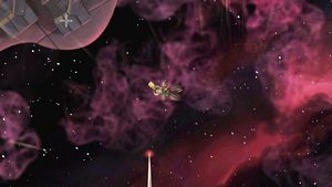 Cliquez sur le trou à gauche (photo ci-dessous à gauche) que Marek vous a montré. Vous arrivez au Tisse-espace. Donnez-lui la carte stellaire. Retournez parler à Marek. Il vous demande d'abaisser les boucliers. Cliquez