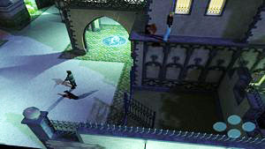 par-dessus le muret de droite puis cliquez sur la gargouille. Vous la poussez en contre-bas. Faites le tour de la maison, longez le muret (photo ci-dessous à droite).