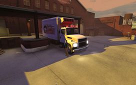 Utilisez les clés de sécurité sur le chariot élévateur. Allez cliquer sur la benne en face (photo ci-dessous à gauche) et poussez-la jusqu'au chariot élévateur (la benne a boguée lorsque je l'ai poussé la 1ère