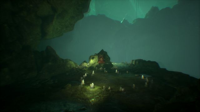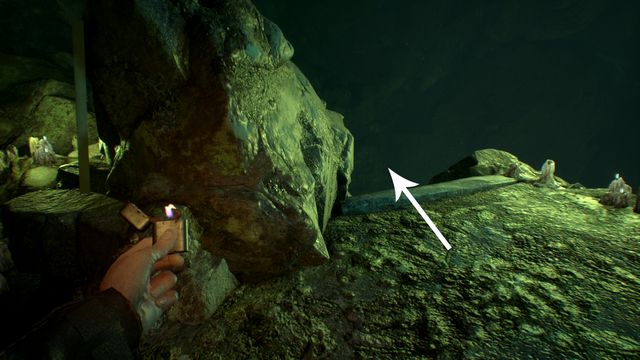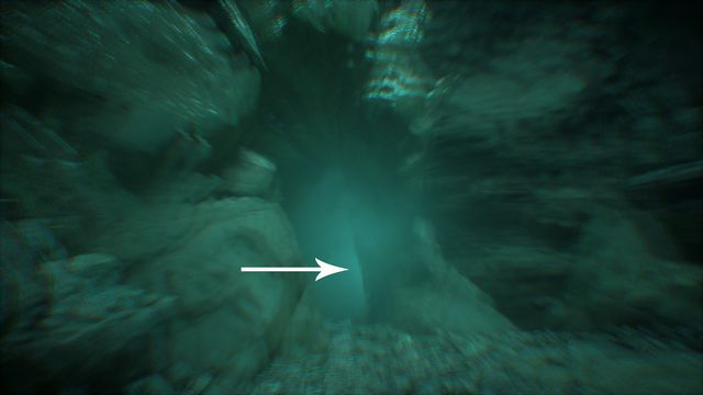 Suivez la côte et passez entre les rochers (photo ci-dessous à gauche). Lorsque vous avez, de nouveau, la main, cliquez sur le monolithe (photo ci-dessous à droite).