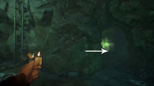 Suivez le chemin, descendez à l'échelle puis prenez le passage à droite de cette dernière (photo ci-dessous à gauche). Dirigez-vous vers le haut de la montagne (photo ci-dessous à droite).