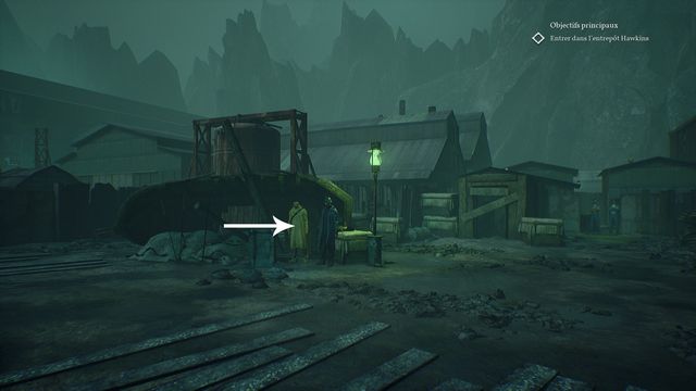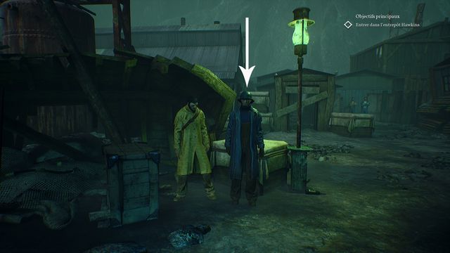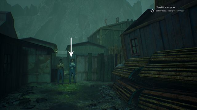 Faites le tour de l'entrepôt et parlez aux 2 contrebandiers (photo ci-dessous à gauche). Ils ne veulent pas vous laisser passer. Vous apprenez qu'ils sont sous les ordres d'une certaine "Cat". Allez parler aux