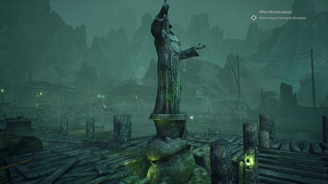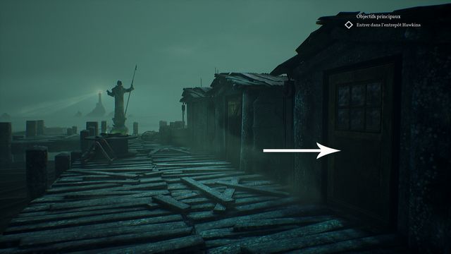 Allez jusqu'à la statue de St Brendan et cliquez dessus pour valider un HF (photo ci-dessous à gauche). En revenant sur vos pas, essayez d'ouvrir la cabane suivante (photo ci-dessous à droite). Vous cassez