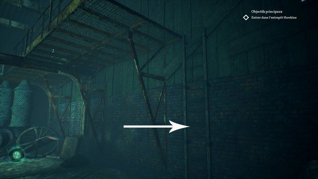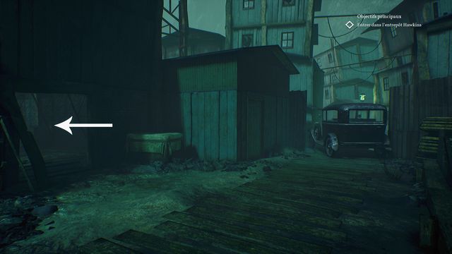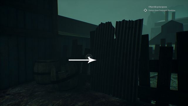 Fouillez les environs à la recherche d'objets, commencez par fouillez la caisse suivante (photo ci-dessous à gauche). Vous récupérez "un anti-retour". Cliquez sur la planche suivante (photo ci-dessous à droite),