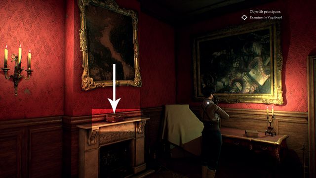 Vous augmentez votre talent "Médecine légale". Forcez le petit coffret sur la cheminée (photo ci-dessous à gauche). Vous récupérez "La clé de la Galerie Sanders". Parlez à Cat puis lisez le livre (ou pas) sur