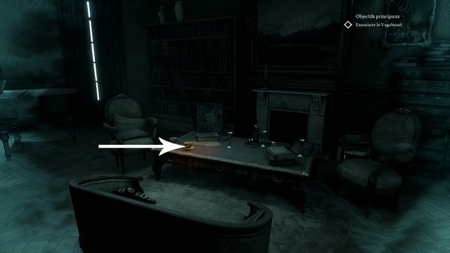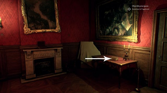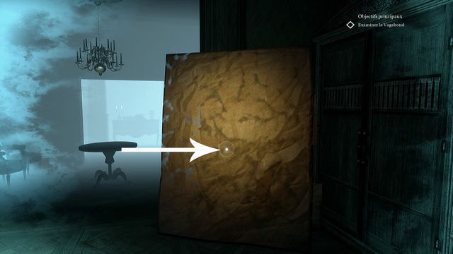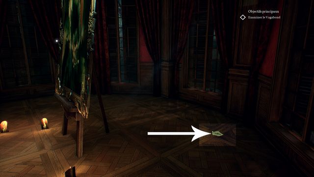 Rejoignez le tableau "le vagabond" (photo ci-dessous à gauche). Cliquez sur le papier au sol (photo ci-dessous à droite). Vous obtenez l'indice "Croquis d'une dague". Cliquez sur la peinture du vagabond. Un monstre