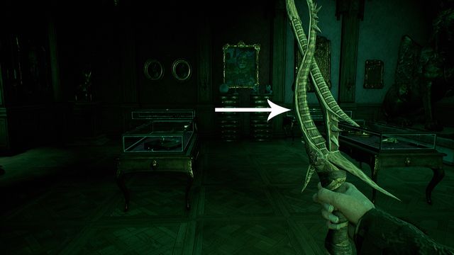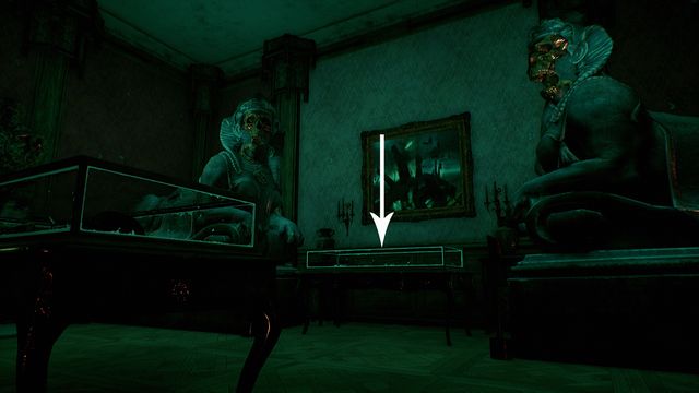 Retournez dans la salle où vous êtes arrivé puis récupérez la dague sous la vitrine (photo ci-dessous à gauche). Vous avez plusieurs dagues sous plusieurs vitrines. Le but est de trouver la bonne dague et d'aller