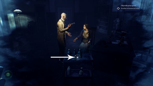 Cliquez sur le flacon sur le chariot (photo ci-dessous à gauche). Cliquez entre les 2 hommes (photo ci-dessous à droite).
