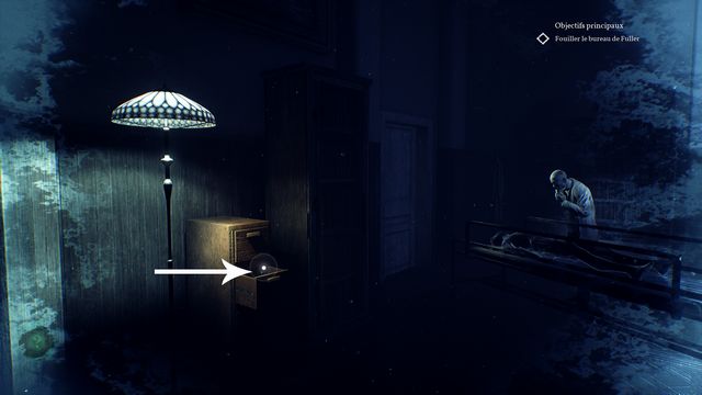 le tiroir droit du bureau suivant (photo ci-dessous à droite). Vous récupérez "La clé de la Chaufferie".