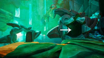 Vous débloquerez un succès en trouvant l'objet suivant (photo ci-dessous à gauche). Revenez en haut, il faut au préalable avoir orienté le courant vers le bas au niveau des portes en pierre.