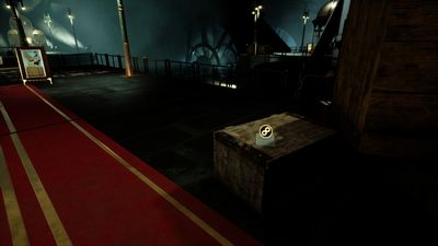Entrez dans le petit pavillon (photo ci-dessous à gauche) et lisez la note à l'intérieur. Vous y découvrez l'image d'un espion. Activez ensuite la manette au centre (photo ci-dessous à droite).
