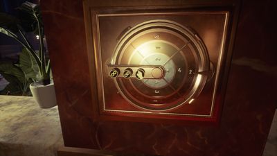 Cliquez sur le coffre et entrez le chiffre 142. Placez le curseur sur chaque engrenage pour y placer un chiffre (photo ci-dessous à gauche). Vous récupérez la carte-clé pour l'ascenseur à l'intérieur. Ressortez de