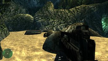 Vous débarquez. Rejoignez votre unité, abattez l'ennemi perché sur le rocher en hauteur et allez placer la charge