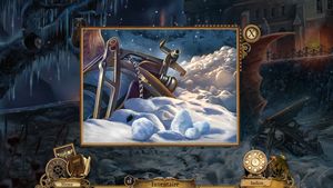 Cliquez sur l'aile volante mécanique et cliquez sur la chaîne pour la récupérer (photo ci-dessous à gauche). Cliquez ensuite sur la boule de neige en bas de l'écran pour la récupérer