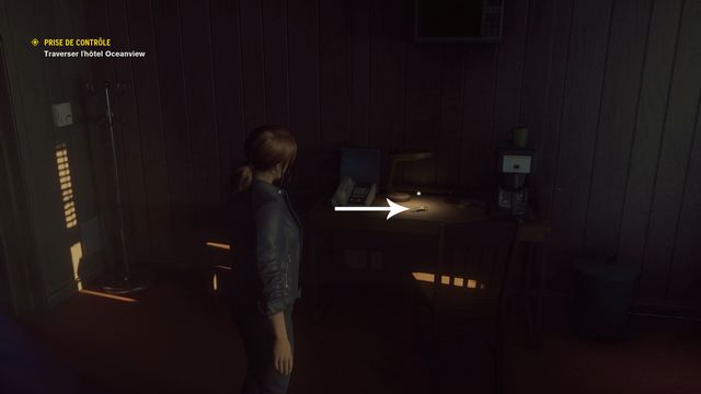 Vous vous retrouvez à l'hôtel Oceanview. Cliquez une fois sur la sonnette, vous ouvrez la chambre 226. Récupérez les clés sur le bureau (photo ci-dessous). Ressortez de la pièce et ouvrez la porte en face.