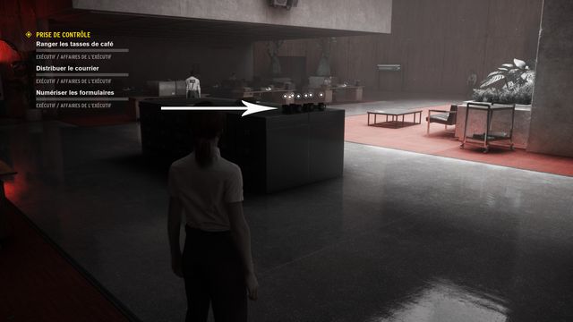 Ramassez le courrier dans la bannette sur le bureau (photo ci-dessous à gauche). Dylan vous tire une balle dans la tête et vous revenez devant le tableau d'affichage des tâches (photo ci-dessous à droite).