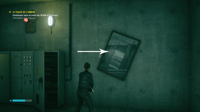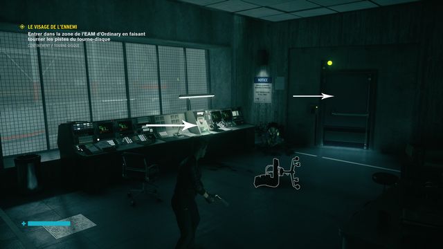 Cliquez sur la note (photo ci-dessous à gauche), tout de suite à gauche en entrant et après avoir passé la porte. En cliquant dessus, vous lancer la mission secondaire "Reflet de Soi". Rejoignez la salle suivante (photo ci-dessous à droite).