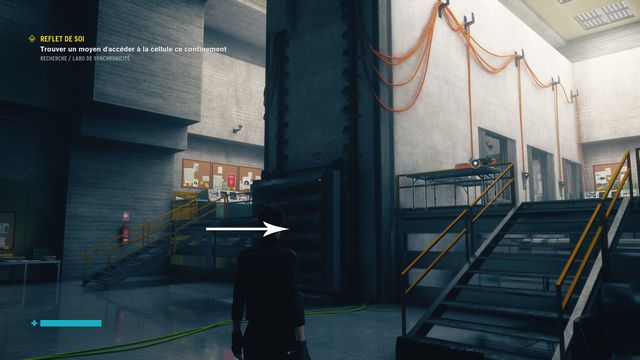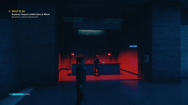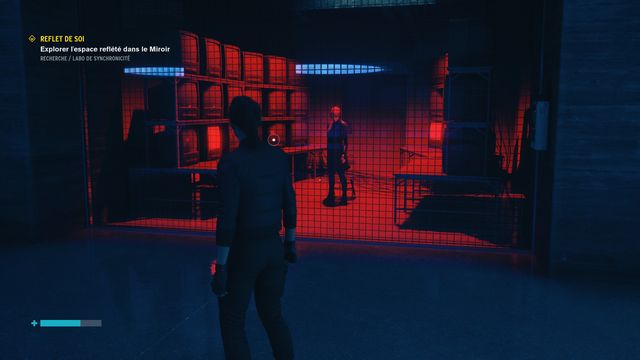 Partez pour le "Secteur de Recherche / Division des Rites". Passez par la porte "Synchronicity Lab" à proximité du point de contrôle. Vous rejoignez le laboratoire (photo ci-dessous à gauche). Descendez au "Mirror Testing" (photo ci-dessous