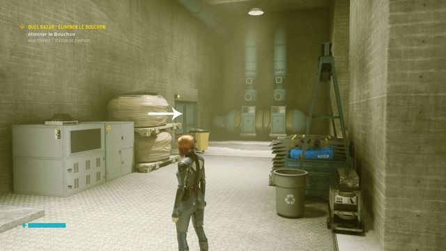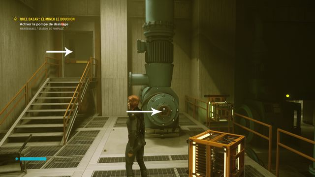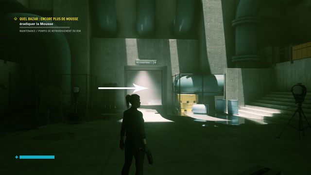 Téléportez-vous au "Secteur de Maintenance / Entrée des Pompes de Refroidissement du RSN". Prenez le passage suivant (photo ci-dessous à gauche) et rejoignez la salle des pompes (photo ci-dessous à droite).