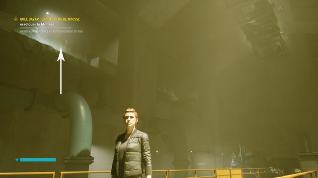 A l'aide de la lévitation, rejoignez les hauteurs de la salle (photo ci-dessous à gauche). Regardez en hauteur, vous verrez de la mousse qui brille un peu plus que les autres (photo ci-dessous à droite).