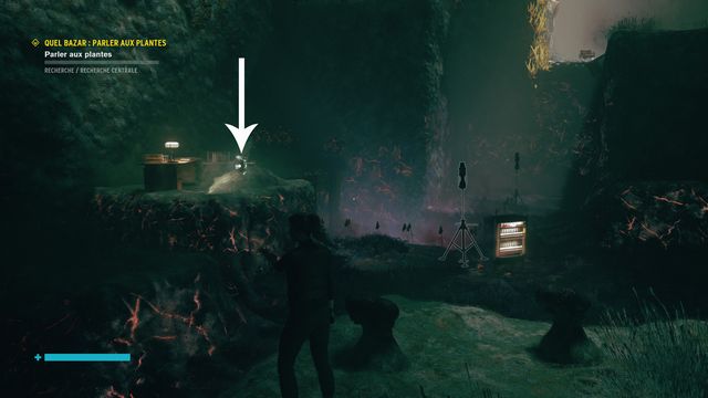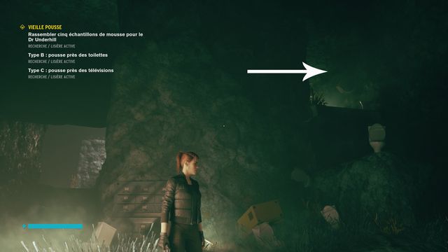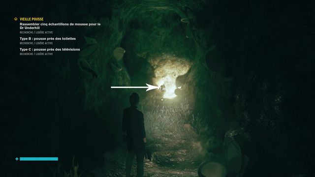 Rejoignez la salle suivante (photo ci-dessous à gauche). Sécurisez la zone et allez cliquer sur le champignon blanc (photo ci-dessous à droite). Vous récupérez le spécimen "E".