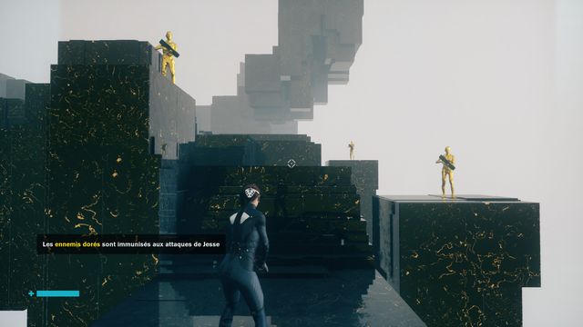 Vous allez rencontrer des ennemis dorés (photo ci-dessous à gauche). Vous ne pouvez les détruire. Utilisez le pouvoir "Evasion" pour éviter leurs tirs. Cliquez sur la corde au bout du plan astral pour en sortir (photo ci-dessous à droite).