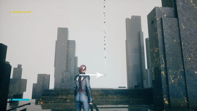 Vous êtes téléporté à l'endroit suivant (photo ci-dessous à gauche). Sautez en contrebas puis allez purifier le point de contrôle (photo ci-dessous à droite).