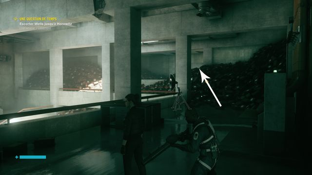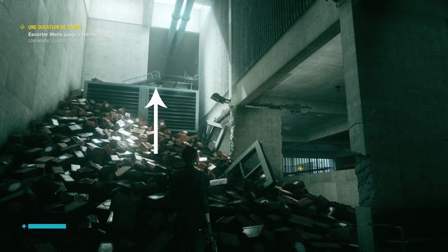 Allez à l'étage, vous trouvez Wells (photo ci-dessous à gauche). Suivez-le, il faut l'escorter et le protéger pendant l'escorte. Grimpez sur le tas d'horloge (photo ci-dessous à droite) pour contourner la grille verrouillée où attends