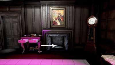 Lisez le document qui s'est placé sur la table. C'est la cheminée du salon. Allez au salon et cliquez sur les chandeliers dans l'ordre du dessin (photos ci-dessous).