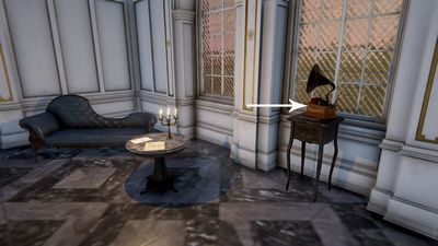 Allez à la chambre de musique dans l'aile Ouest puis utilisez "la clé harpe" sur la porte. Retournez dans le hall puis utilisez "la clé déguisée" sur le coffret (photo ci-dessous à gauche). Vous