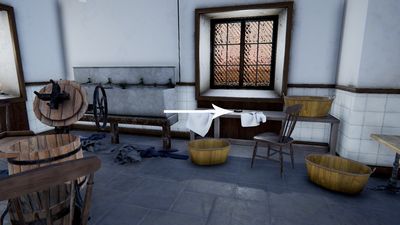 la buanderie puis utilisez le tournevis sur la manivelle de la machine à laver (photo ci-dessous à droite). Vous récupérez "la roue à manivelle". Examinez le cadran des aiguilles.