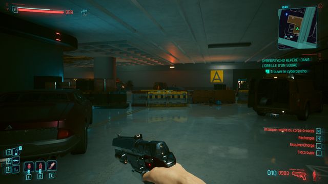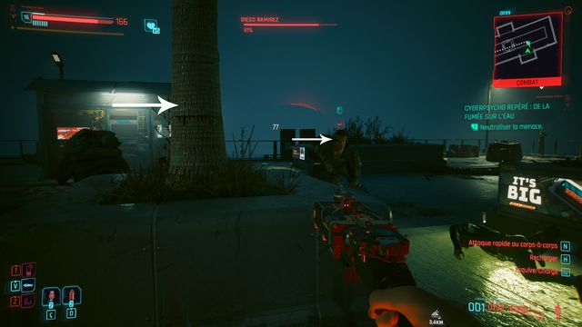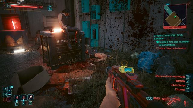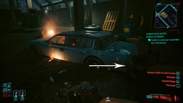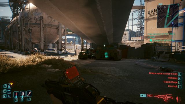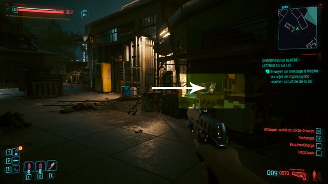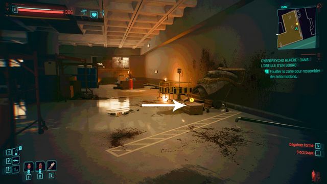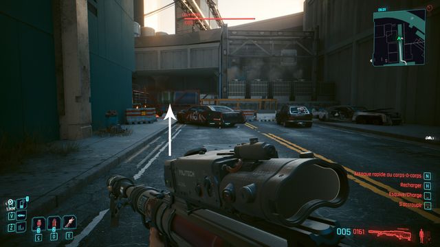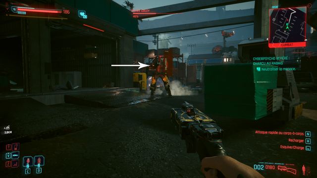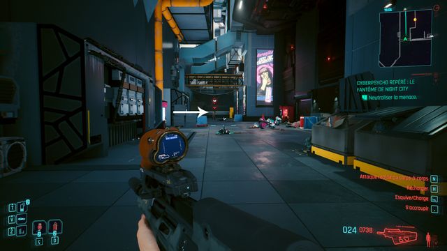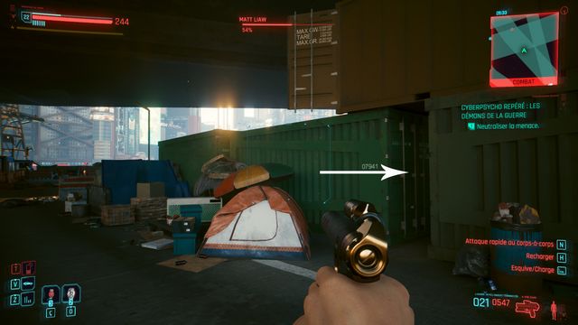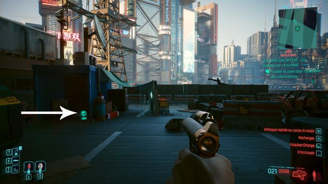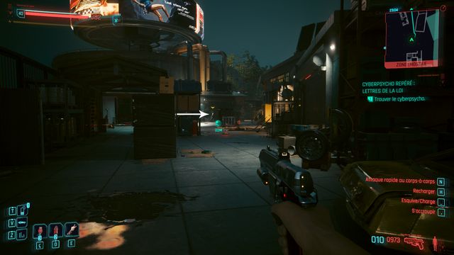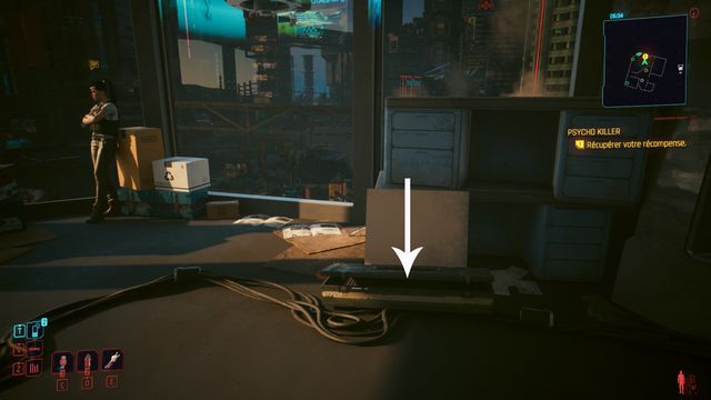 Pensez à sauvegarder avant le combat car la quête bug. La cyberpsycho peut apparaître sur une caisse et ne pas bouger (photo ci-dessous). Même si vous la tuez, vous ne pourrez valider la quête.