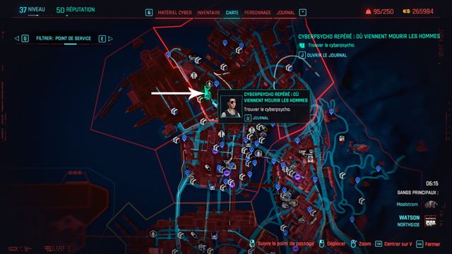 Pour ce cyberpsycho, il faut venir à partir de 20h dans la zone sinon il n'apparaîtra pas.
