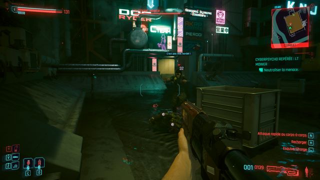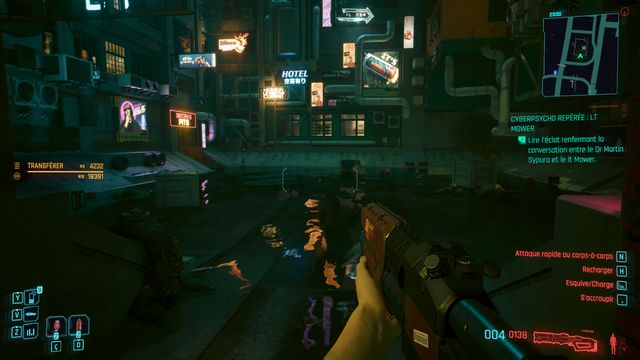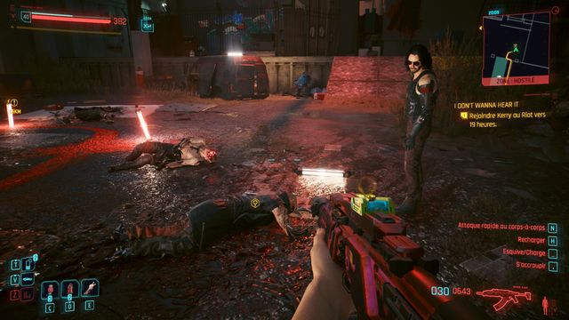 vous pouvez le tuer en 3 balles en visant la tête. Rien de spécial sur ce cyberpsycho hormis le fait qu'il peut se téléporter de quelques mètres. Fouillez son corps, utilisez l'ordinateur dans la zone et lisez tous les messages (photo ci-dessous