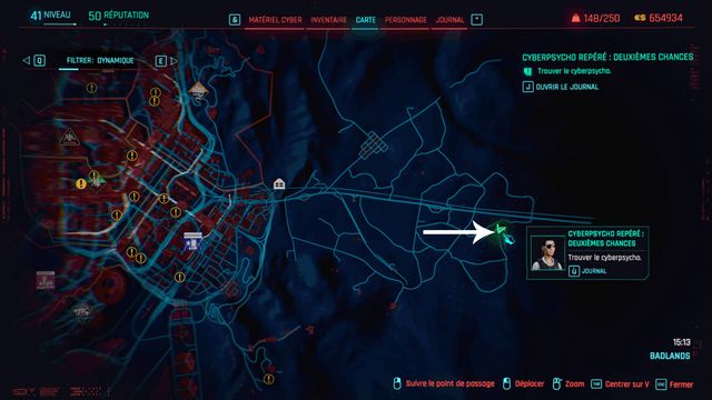 Ce cyberpsycho est super rapide. J'ai utilisé une arme de corps à corps électrifié (clochette). Lorsqu'elle s'éloignait trop, le fusil de sniper. Fouillez le corps de la cyberspycho et lisez l'éclat que vous venez de récupérer "L'Heure du Reset