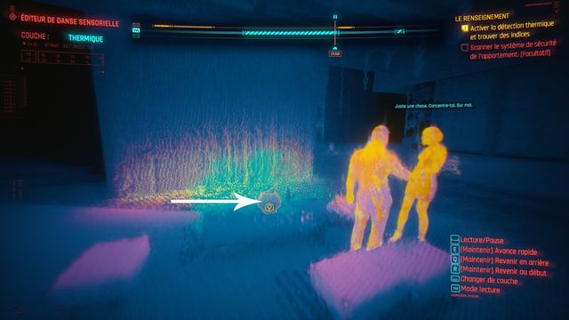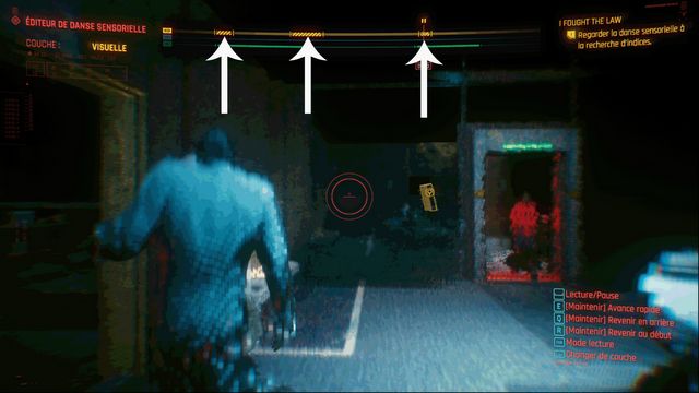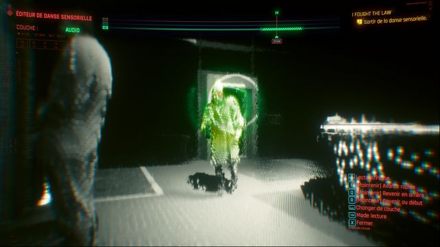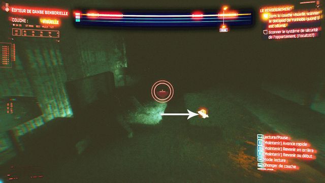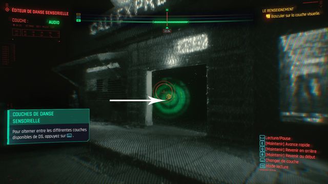 Avancez la bande jusqu'au point indiqué puis reculez et scannez l'écran de vidéo surveillance (photo ci-dessous à gauche). Vous pouvez quitter la danse sensorielle quand on vous le propose. Vous entrez dans une nouvelle danse sensorielle avec