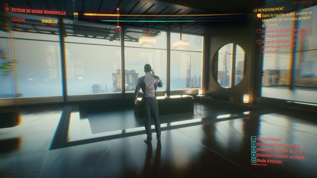 Laissez la scène défilée puis rembobiner de zéro une 1ère fois. Passez en "mode édition", switcher sur la bande sonore et scanner le téléphone de Yorinobu. Scanner ensuite le bruit sur le grand mur (photo ci-dessous à gauche). Rappelez-vous,