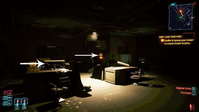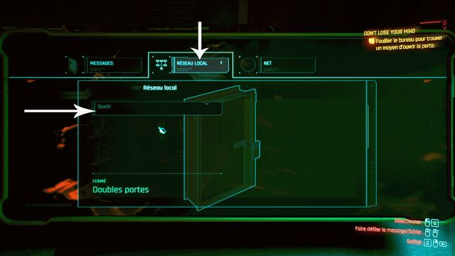 Sur l'ordinateur du chef, cliquez sur l'onglet "Réseau local" et cliquez sur "ouvrir" (photo ci-dessous à gauche). Vous débloquez la porte à proximité (en sortant du bureau, sur la gauche). Utilisez l'ordinateur dans la salle suivante (photo