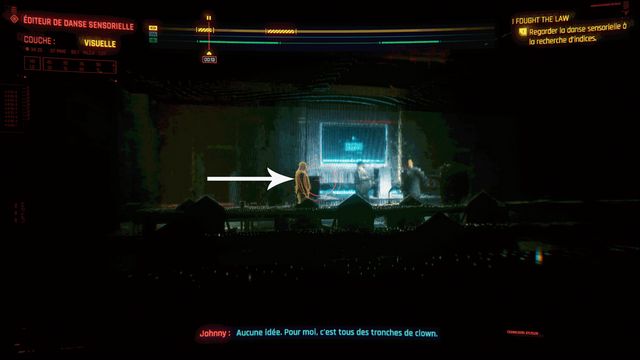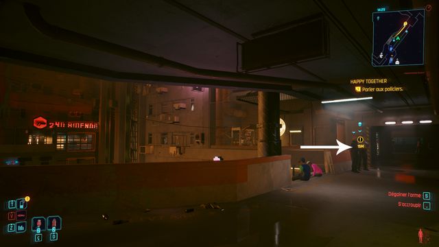 Vous pouvez utiliser le téléporteur "Colombarium" pour vous approcher de la zone rapidement. Johnny apparaît quand vous approchez de la cache (photo ci-dessous). Parlez-lui puis retournez parler aux policiers. Suivez les 2 flics