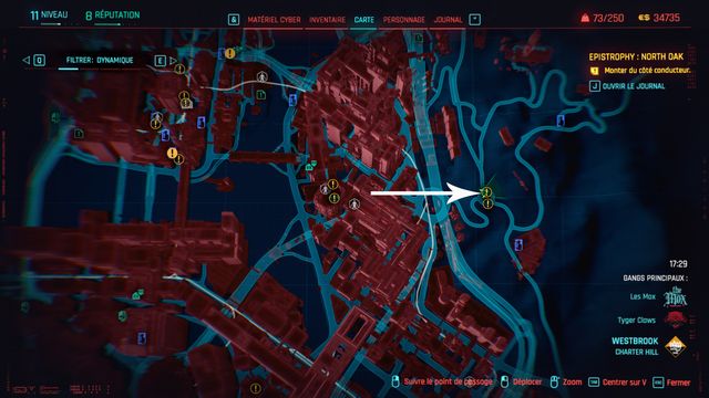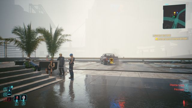 Vous pouvez vous téléporter à "Longshore Nord" pour y aller rapidement. La voiture est à proximité de ce point de téléportation. La voiture attend dans le recoin (photo ci-dessous à gauche). Lorsqu'elle démarre, suivez-là. Au bout d'un moment elle