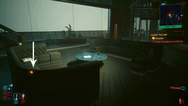 Prenez l'ascenseur pour rejoindre les appartements des Peralez. Entrez dans l'appartement et asseyez-vous sur le canapé (photo ci-dessous). Après avoir fait votre rapport aux Peralez, ressortez-du bâtiment pour valider la quête.